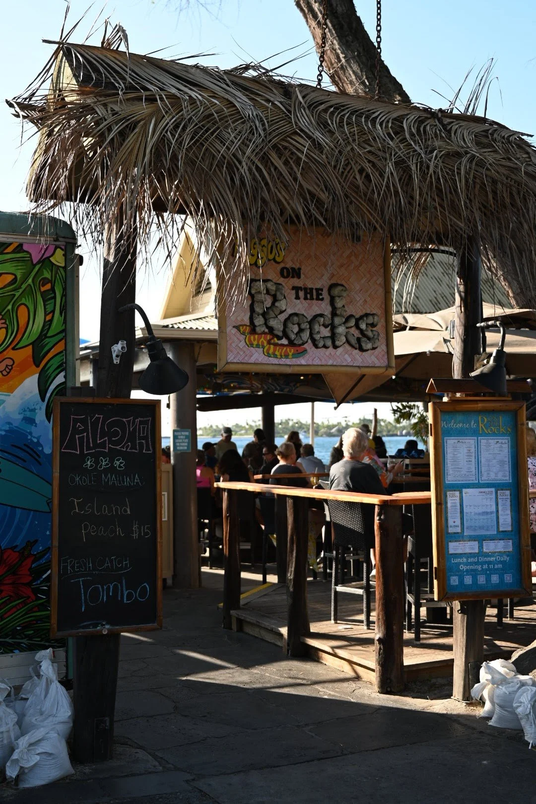Casual Dining and Entertainment on the ‘beach’ at Kailua-Kona Bay.
